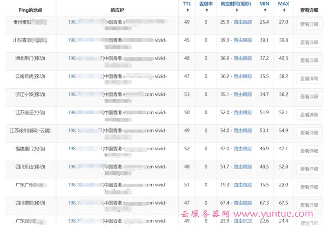 全国多地区多线路延迟测试