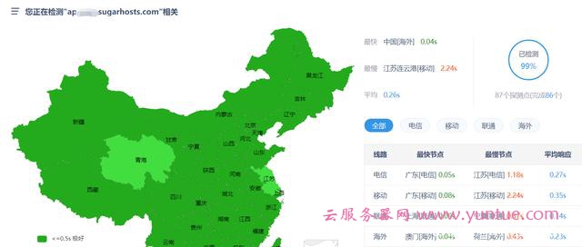 86个探测点,平均延迟0.26s,可以说非常犀利。