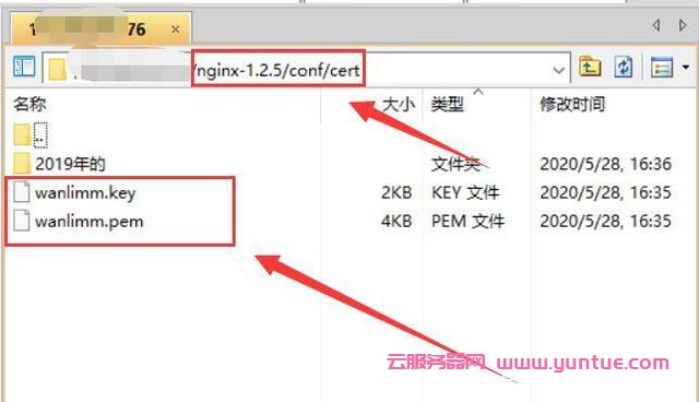 再把这2个文件上传到我们网站服务器的SSL文件的安装目录里,我的网站安装的是ngnix服务器,所以SSL的安装目录是nginx-1.2.5/conf/cert,如下图: