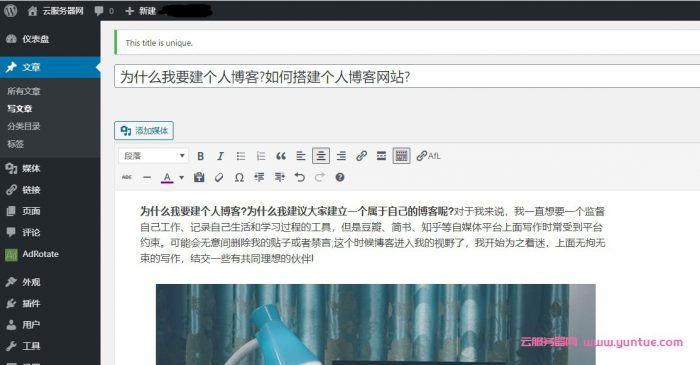 通过上面的教程安装完博客,那么就进入后台配置主题和插件,然后积极更新网站内容吧,从此踏上了个人独立博主之旅啦!