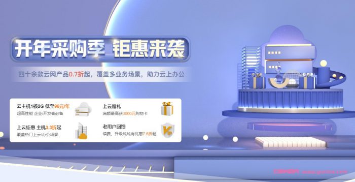 2021年天翼云开年采购季活动开启了!可能很多新手站长或企业了解天翼云,天翼云是中国电信旗下的云计算服务商,目前与主流品牌云服务商一样推出了一年一度的开年采购季云产品大促活动。40余款云产品0.7折起,覆盖了多业务场景,助力云上办公,云主机1核2G低至96元/年,上云赠额额最高可获3000元购物卡,老用户续费升级优惠7.5折等福利。