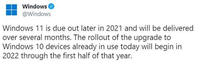 根据微软的消息,运行 Windows 11 的新设备将在2021年上市,而现有Windows 10设备的Windows 11升级将在2022年开始。