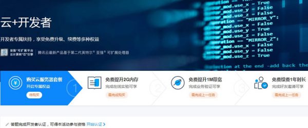 腾讯云+开发者是腾讯云官方推出扶持开发者的活动,可享受免费升级、续费等多种权益。腾讯云1核2G 1M带宽云服务器 搭配50G高性能云盘(.com域名可选),本活动云服务器购买后可获得免费升级、续费权益。