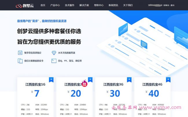 创梦云挂机宝怎么样?创梦云是来自国内的主机销售商,成立于2018年4月30日,创梦云前期主要从事免备案虚拟主机产品销售,现在将提供5元挂机宝、特惠挂机宝、香港云服务器、美国云服务器。