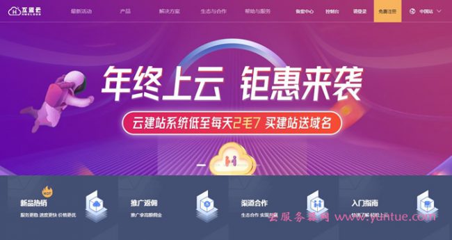 互盟云现推出2020年“年终上云,钜惠来袭”活动,云建站系统低至每天2毛7,买建站送域名。深圳1核2G2M云服务器仅18元/月,468元/年;香港1核2G2M云服务器仅58元/月。