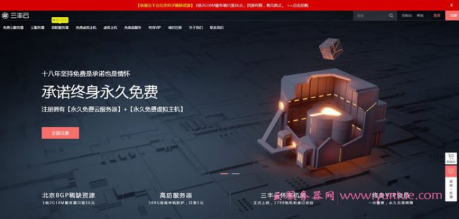 为我们学生和初创业者提供永久免费虚拟主机和云服务器,一方面是情怀另一个也是三丰云独有的特点,开通免费产品后通过免费延期可以达到永久免费使用 1BGP多线路 独立IP地址。