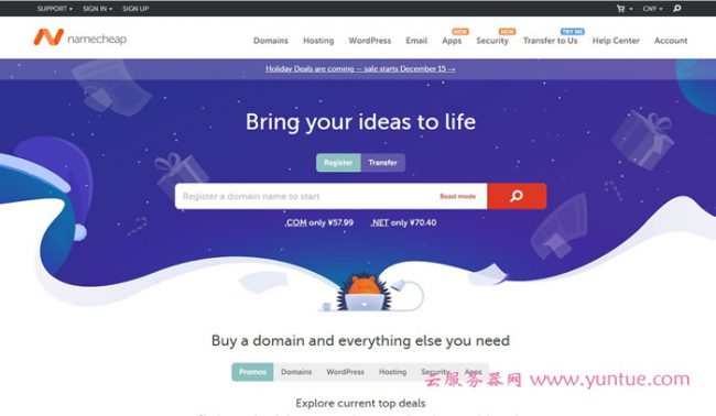 namecheap这家来自国外的域名注册商,在国内站长间的口碑还是非常不错的,性价比高还有诸多优惠活动,几乎每个月都会有优惠出现,云服务器网(yuntue.com)小编刚刚发现最新的2020年12月优惠码又更新了,特来整理一下,方便大家更好的选择。