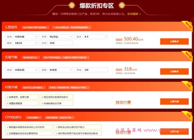 精选一万网络多款热门云产品,低至5折,助力企业快速上云。