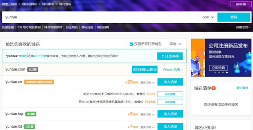 答:登录阿里云,点击域名与网站(万网)-域名-域名注册,然后搜索你想注册的域名并进行购买,如图2.11和图2.12。