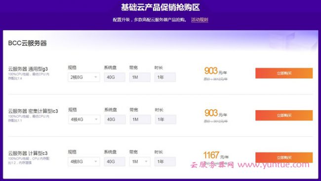 上面的百度云服务器,推荐云服务器计算型C3,2核4G1M带宽的配置仅230元/年,非常适合建站使用,如果1M带宽不够用,可以另行购买。
