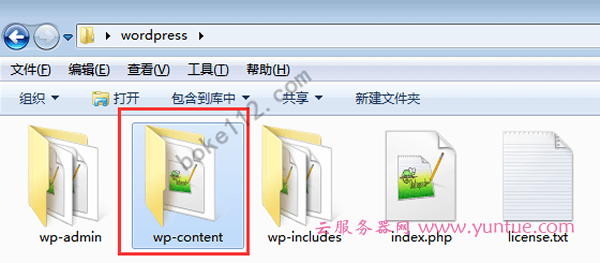 2. 将 wordpress-5.6-zh_CN.zip 压缩包解压得到一个 WordPress 文件夹,建议删除 wp-content 文件夹,然后全选所有文件并压缩得到一个压缩包 wordpress.zip(PS:可起其他名字,这样的话就没有最新版本的默认主题 Twenty Twenty-One,如果需要就不要删除 wp-content\themes\twentytwentyone\这个文件夹)。