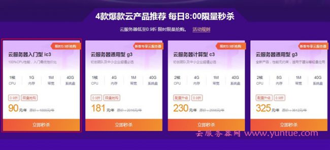 百度云入门型云服务器,配置1核CPU、1G内存、1M带宽、40G系统盘,价格为90元/年。这个配置为入门型配置,可以做个人兴趣站、测试网站、独立展示页面等。当然,还有其它通用型云服务器、计算型云服务器等供选择。