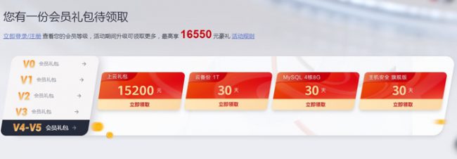 立即登录/注册查看您的会员等级,活动期间升级可领取更多,最高享16550元豪礼!<<点击领取上云礼包
