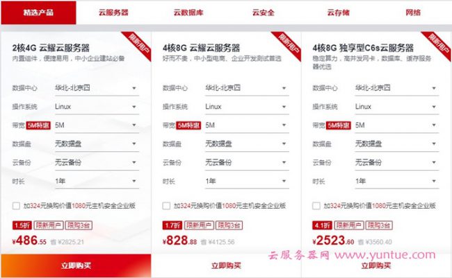 云服务器网(www.yuntue.com)给大家强烈推荐以下三款服务器,适用于不同场景,折扣都在1折左右,全年最低,如果有需要的,可以不用犹豫了,性价比还是非常高的。