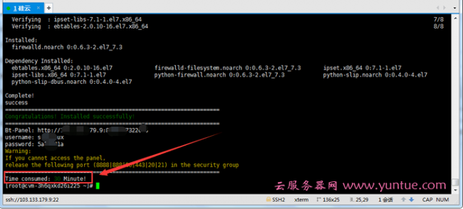 宝塔面板的安装基本顺利,耗时30分钟,这个耗时比阿里云服务器和腾讯云服务器来说比较高,但不能单一的说明硅云服务器不理想,因为面板在安装过程中有数据下载过程,如果宝塔官方的CDN线路对香港区域支撑不友好,肯定会影响宝塔的安装时间,所以对于安装时间问题,大家可以理性对待。