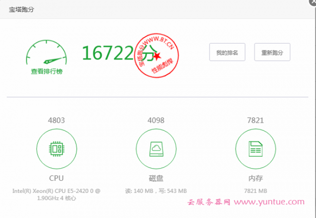 宝塔面板是Linux系统环境搭建的首选,选择宝塔面板跑分,是为方便大家对比。跑分通过通过公式:1万次整数+2万次浮点+1亿位圆周率+1万次排序 +((磁盘读+磁盘写)*IO速度)+内存容量来计算综合得分。