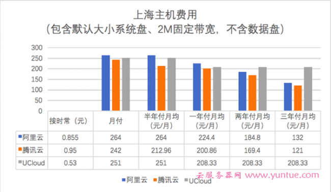 鉴于每月一付和年付时阿里云、腾讯云和UCloud的费用相差不大,在考虑性能的情况下,UCloud性价比要更高。前往查看UCloud云主机促销活动>>