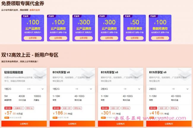 云服务器(www.yuntue.com)是一家专门做阿里云服务器代金券、腾讯云服务器优惠券的网站,这里你可以找到阿里云服务器腾讯云服务器等国内主流云服务器优惠价格,以及海外云服务器、vps主机等优惠信息,我们会为你提供性价比最高的云服务器和域名、数据库、CDN、免费邮箱等企业常用互联网资源。