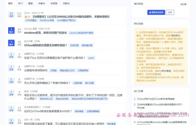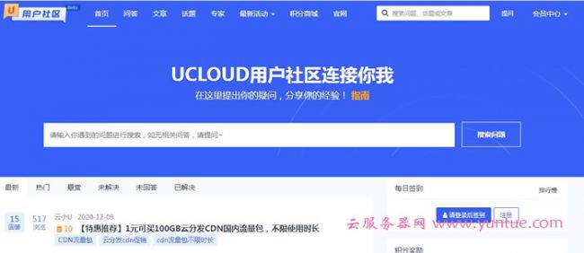 ucloud代金券(优惠券)如何通过社区领取?ucloud用户社区是ucloud优刻得最近上线的一个用户交流平台,可解答ucloud云服务器使用过程中遇到的各种问题,目前这个社区人气一般,所以吸引新用户的策略还不错,社区积分可以直接兑换ucloud账号赠金(UCloud代金券)。