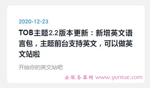 TOB主题2.2版本更新:新增英文语言包,主题前台支持英文,可以做英文站啦!这相当于一个TOB主题就成了wordpress外贸建站主题、wordpress外贸主题,这对此次用过TOB主题的用户做英文站大为有利!