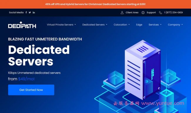 dedipath怎么样dedipath家基本所有的节日都不会落下,逢节必出活动,本次商家针对所有的VPS都是55折优惠,这个优惠力度没有网一和黑五大,不过商家放出了几款特价的独服套餐还是可以看一下,所有美国独服都是G口不限流量,可选洛杉矶和拉斯维加斯机房,同时还提供20G的DDOS防御,IP也给到了5个,有跑流量或做项目的朋友可以关注一下。