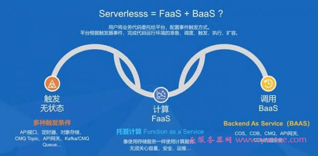 serverless中文的含义是 “无服务器”,但是它真正的含义是开发者再也不用过多考虑服务器的问题,但是并不代表完全去除服务器,而是我们依靠第三方资源服务器后端,比如使用 Amazon Web Services(AWS) Lambda. 计算服务来执行代码,那么Serverless架构分为 Backend as a Service(BaaS) 和 Functions as a Service(FaaS) 两种技术,Serverless 它是由开发者实现的服务端逻辑运行在无状态的计算容器中,它是由事件触发,完全被第三方管理的。