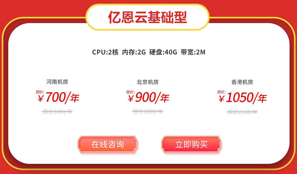 4.亿恩也提供基础型云服务器,配置和价格如下:
