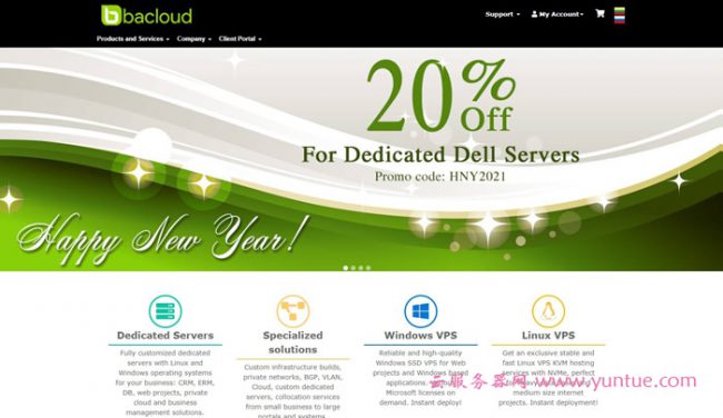 bacloud怎么样?立陶宛知名机房bacloud(2005~)也开始搞2021年新年优惠促销,Linux+Windows的KVM系列VPS直接8.5折循环优惠!VPS采用KVM虚拟,NVMe SSD整列,500M带宽,不限制流量,自带一个IPv4+IPv6,solusvm管理面板… 高性能,大带宽,不限流量,比较适合做网站、下载、CDN等业务。