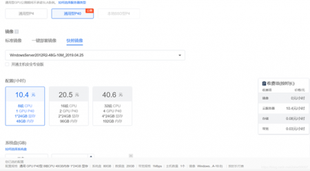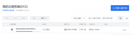 2.这里的镜像选择的是windowsServer2012R2的,也可以选择Linux等镜像。滴滴云有一个好处就是镜像里自带了GPU驱动,不需要自己重新下载,节省了很多时间。