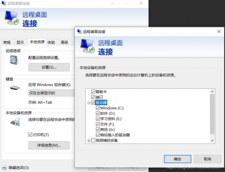 在远程连接这里,选择本地资源,勾选驱动器,选择你想传输资料的盘,进入服务器后就能够在服务器内查看本地的文件,也能将本地文件拷贝到服务器里。