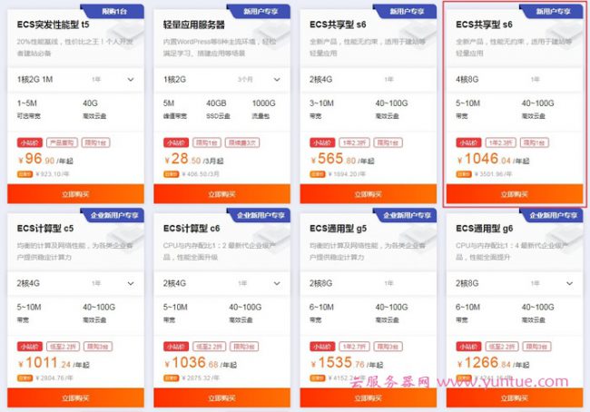 阿里云对新用户和老用户政策是不同的!为了占有市场率、抢占市场份额,阿里云给到新用户的优惠已经是很低了,不过仅一次!本文提到阿里云4核8G5M云服务器,阿里云新用户购买Ecs共享型S6 4核8G5M云服务器价格:1046.04元/年,你可以通过:阿里云小站新用户活动购买,具体价格可以对参照下图所示: