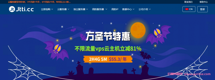 新加坡服务商jtti发来了万圣节最新OFF,针对自家CN2线路云服务器和专用服务器进行优惠促销,新用户下单立减81%,2H4G 5M低至$55.3/年,100M大带宽专用服务器仅需$99.3/月。另外活动期间购买云服务器,在月付5折,年付2.5折的基础上,还增加了送时长活动,买3个月赠送1个月,买6个月赠送2个月,性价比非常高,如有需要可访问官网购买,具体off内容如下: