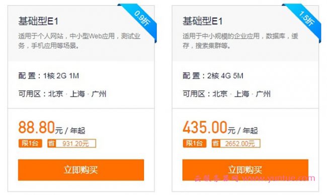 | 1核2G | 50G | 1M | 直接买 | 88元 | 购买 |