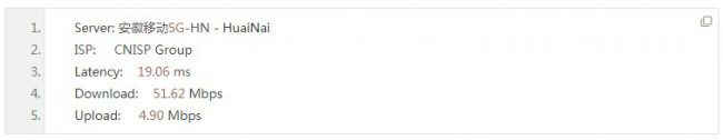 上行速度基本符合宣传的5Mbit/s, 下行速度应该是 50Mbit/s左右!