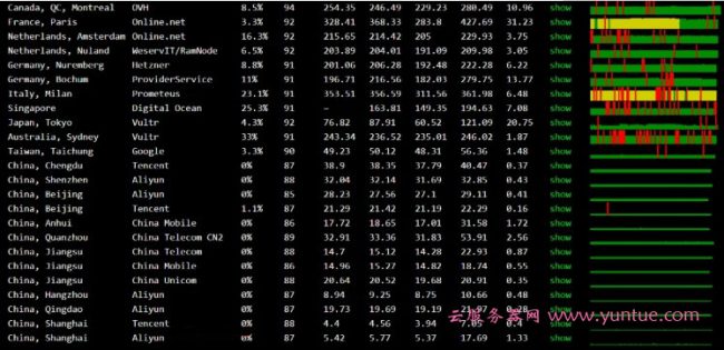 测试时间晚上22点左右!国内表现良好!境外大部分地址丢包还不算太严重!