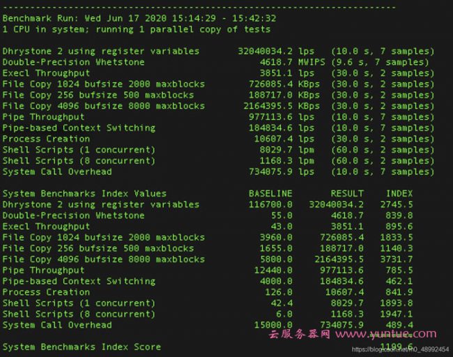 虽然UnixBench跑分测试并不能完全代表真实性能,但还是可以提供一定的参考。执行以下命令: