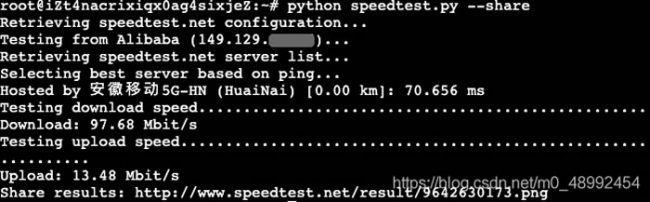 首先使用Speedtest工具测试主机的上传和下载带宽,执行以下命令: