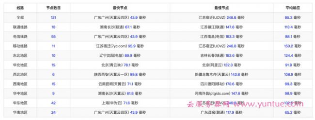 其中,电信节点的上传速度很低,联通略好,而移动节点的上传速度较快,而下载速度均可达到100Mbps左右。