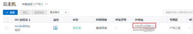主机IP可以进入控制台-云主机查看,注意要用的是公网IP。