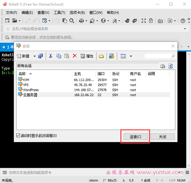 5.选择刚建好的会话,点击连接