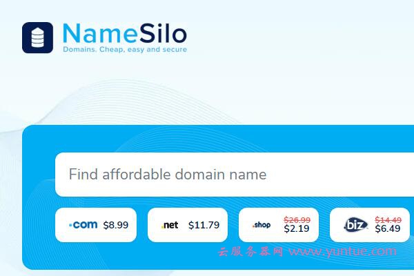 NameSilo是一家成立于2009年的域名注册商,同时也是ICANN认证的域名注册商之一。近几年Namesilo的发展越来越迅速,已经成为是比较知名的国外域名商之一。虽然没有GoDaddy知名度高,但是域名注册价格便宜,而且提供免费的域名停放、免费隐私保护等功能。