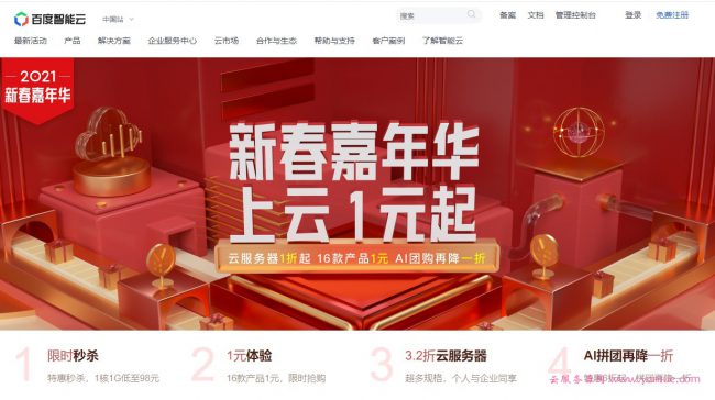 点击进入:百度智能云2021“新春嘉年华,上云1元起”活动地址