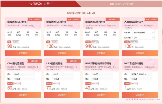 百度智能云(百度云)2021年春节前推出了“新春嘉年华,上云1元起”活动,入门型云服务器1折起,16款产品低至1元起,AI团购再降一折。百度智能云这次新春活动主要分六个专区活动:限时秒杀活动、1元体验活动、3.2折云服务器、AI拼团再降一折、安心春节加油站、新春抽福包活动,这次活动还是比较给力的,希望购买百度云产品的不要错过这次活动了。