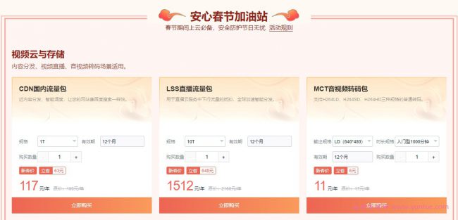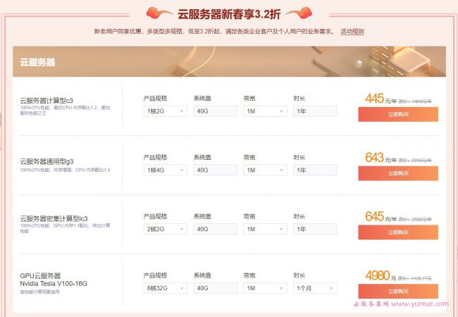 新老用户同享优惠,多类型多规格,低至3.2折起,满足各类企业客户及个人用户的业务需求。