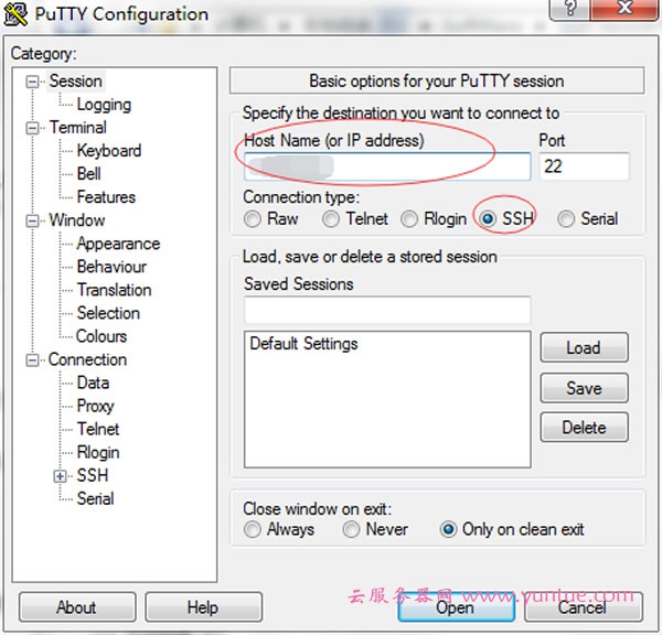 2、在 Host Name 中输入实例的公网 IP 地址。
