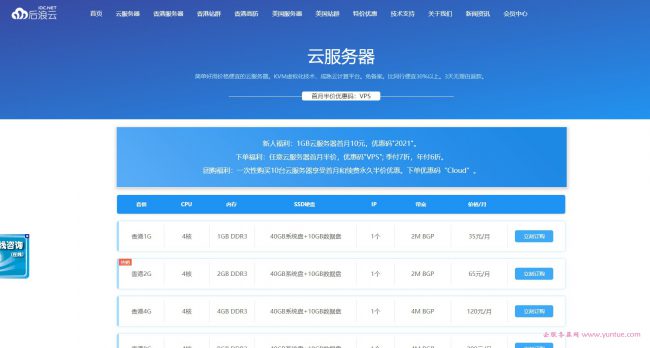 新人福利:1GB云服务器首月10元,优惠码”2021“。