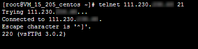 执行以下命令,测试 vsftpd 服务是否启动成功telnet