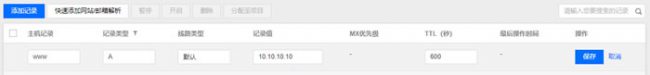 | 添加记录 | 主机记录:填写域名的前缀,例如 “www”。 记录类型:选择 “A”。 线路类型:选择 “默认” 类型。 记录值:请输入您的主机 IP 地址(公网 IP)。 MX 优先级:不需要填写。 TTL:默认为600秒。 |