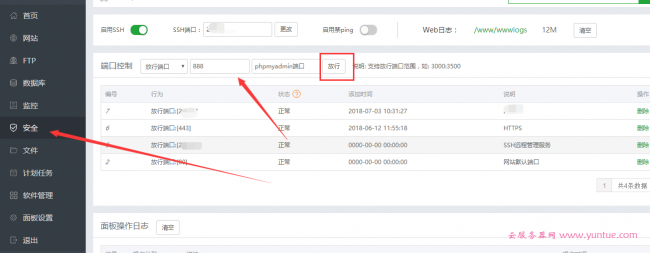 在宝塔面板–安全选项卡放行888端口,如下图: