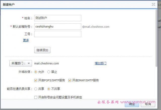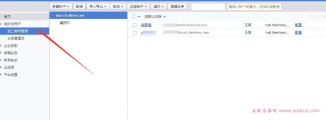 在左侧我们添加一个其他的邮箱帐号作为我们的网站发信邮箱(不要直接使用管理员帐号发信)
